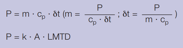 The heat load of a heat exchanger can be derived from the following two formulas: