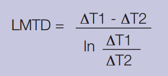 LMTD can be calculated by using the following formula, where ?T1 = T1–T4 and ?T2 = T2–T3
