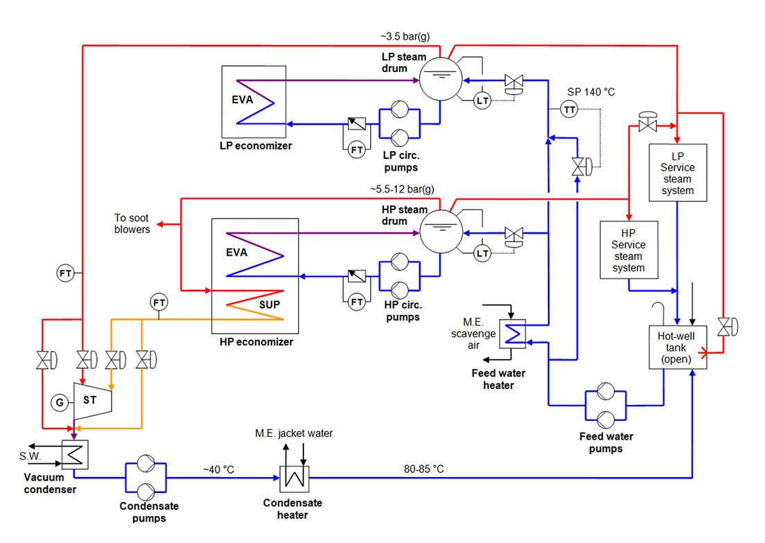 標(biāo)準(zhǔn)的Aalborg XW設(shè)計(jì)得到了增強(qiáng),可以更有效地利用大型柴油機(jī)的廢能,從而節(jié)省了燃油消耗并減少了CO2排放。